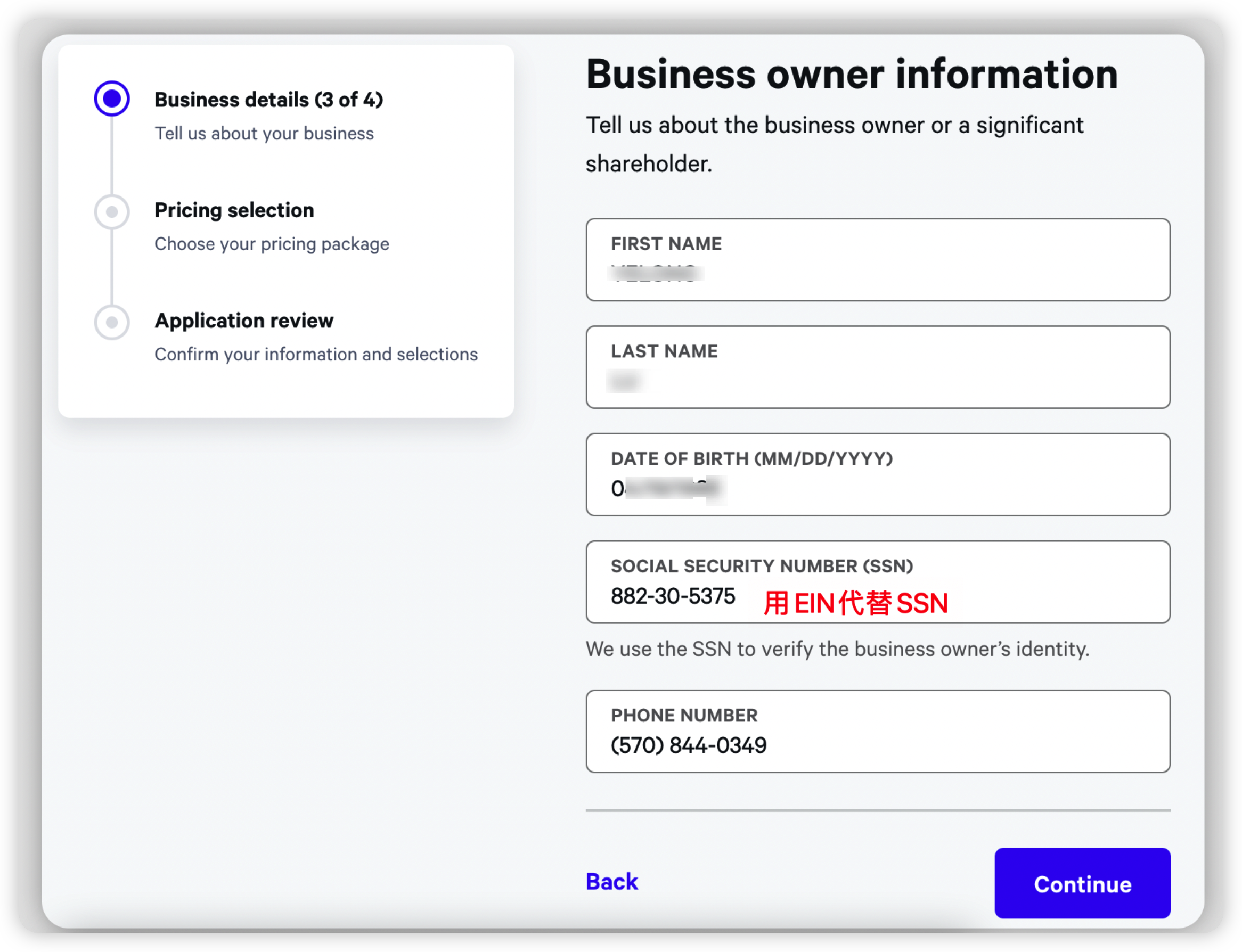 用EIN代替SSN是大多数情况下可以解决问题的
